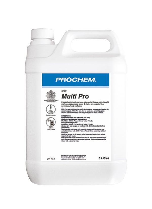 Prochem multi pro is a professional general purpose pre-spotter and traffic lane pre-spray for carpets.