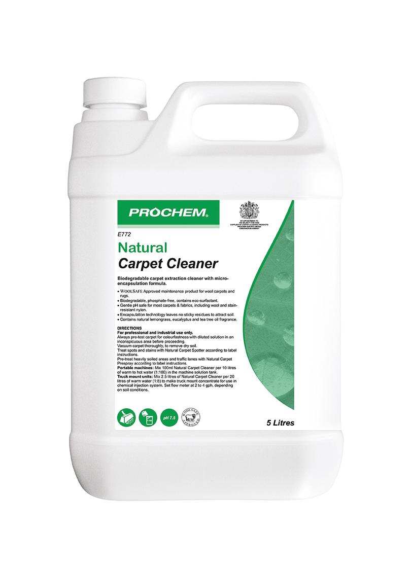 Prochem natural carpet cleaner is a carpet extraction cleaning concentrate with encapsulation technology and gentle PH, for cleaning most types of carpets and rugs.